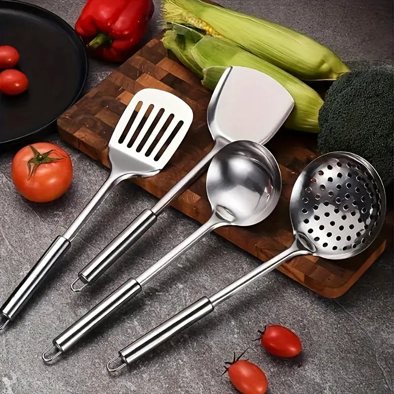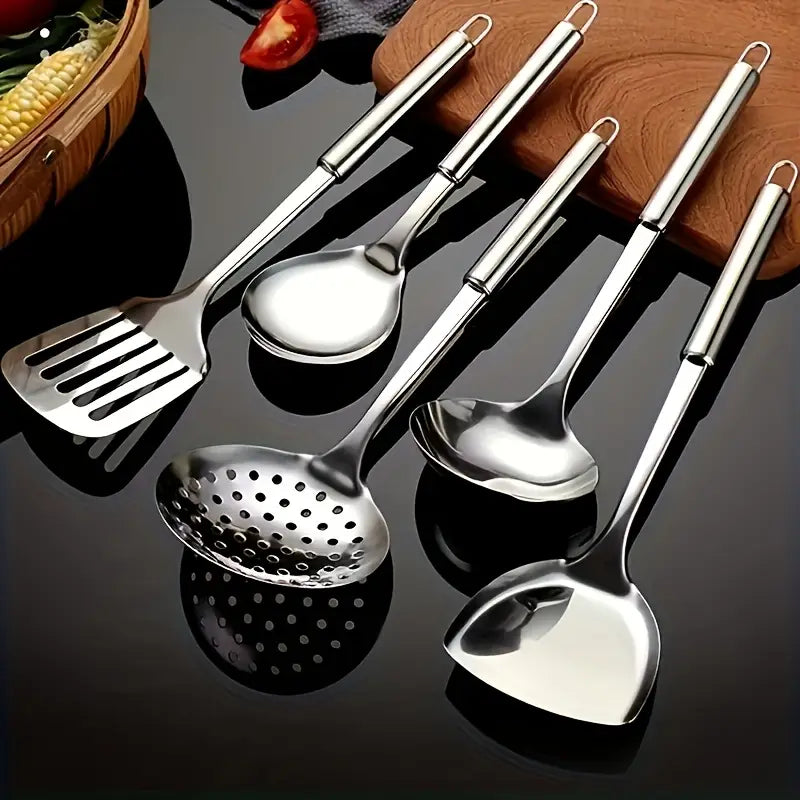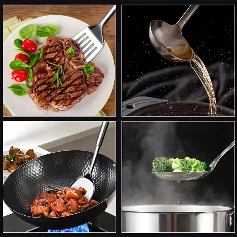 Transforme sua cozinha com o Conjunto de Utensílios em Aço Inoxidável – 9 Peças.